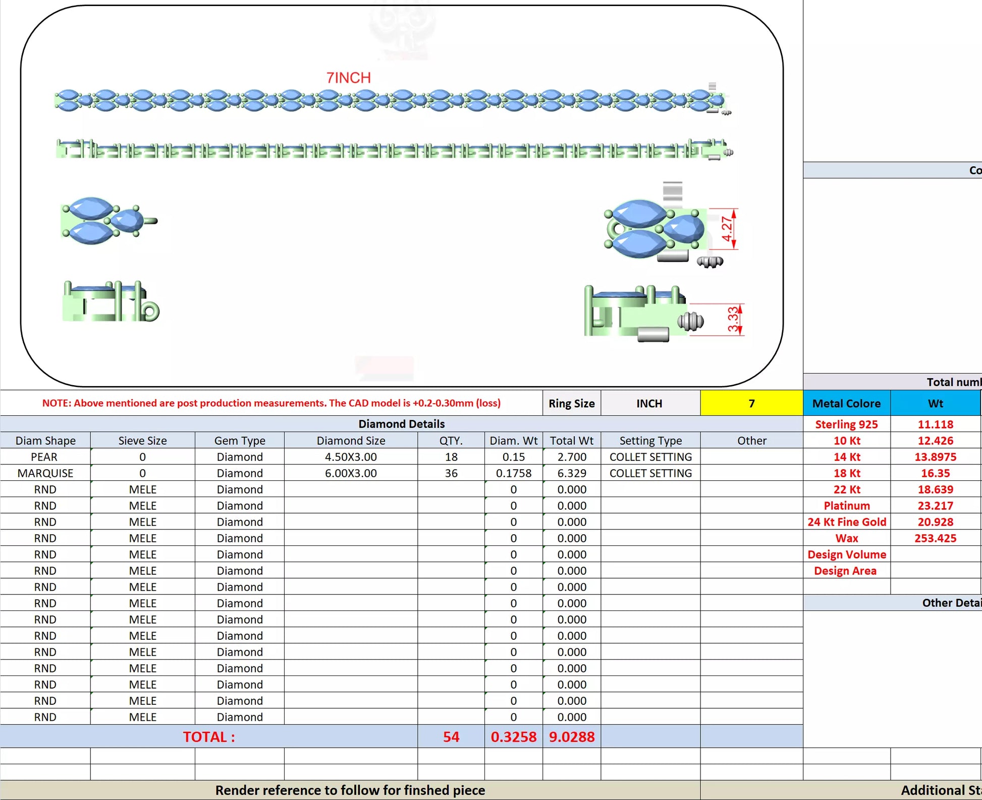 Marquise & Pear shaped lab diamond bracelet 14K Gold
